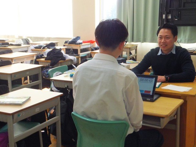 1年生英語は、一人一人がALTと英会話をしています。また、後半の写真は社会の授業の様子です。