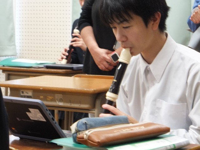 2年生の音楽は、音楽室でリコーダーに取り組んでいました。合奏を聴かせてもらいました。