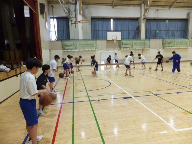 こちらは、バスケットボール部です。1年生もたくさん入って活動していました。