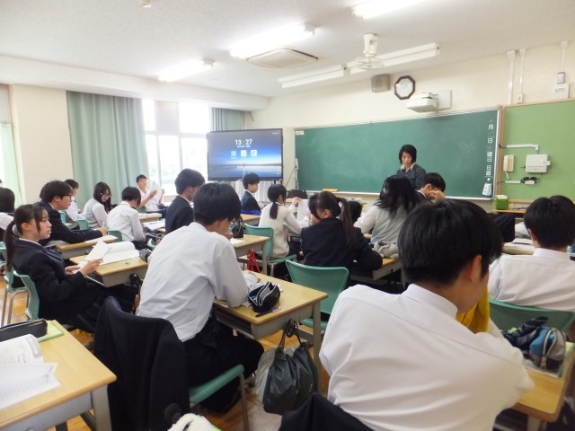 1年生の授業です。英語科教員とALTによる英語の授業と社会の地理の授業です。