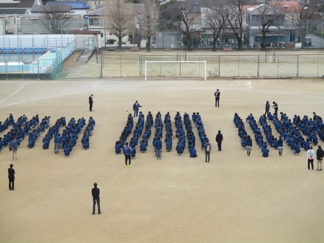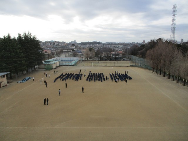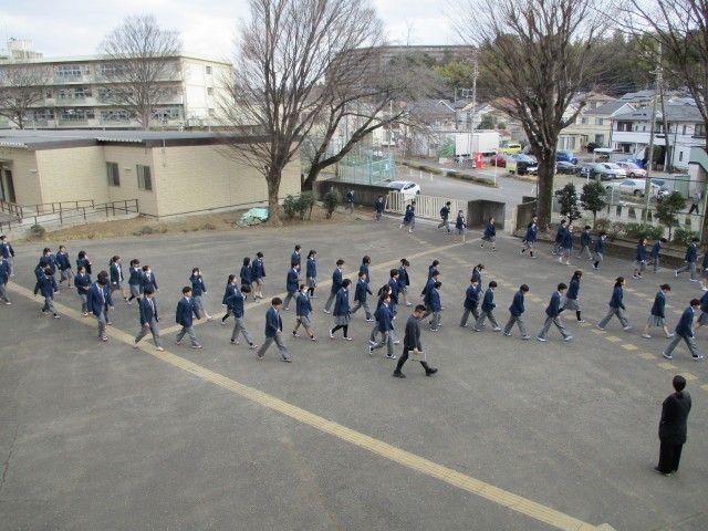 生徒たちは、緊急放送を聞き出火場所を確認、担当の先生の指示に従い、落ち着いて、走らず、速やかに校庭に避難しました。