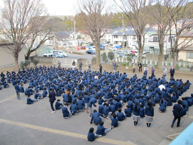 地震の揺れがおさまるのを待って、速やかに前庭に移動し整列・点呼・人員の確認を行いました。