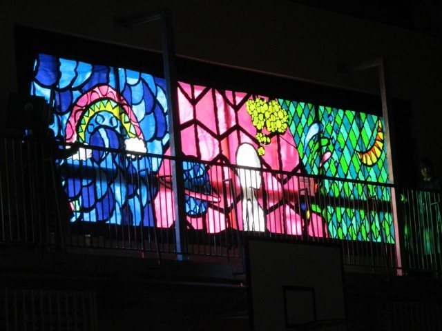 また、在校生全員で制作したステンドグラスのお披露目をしました。