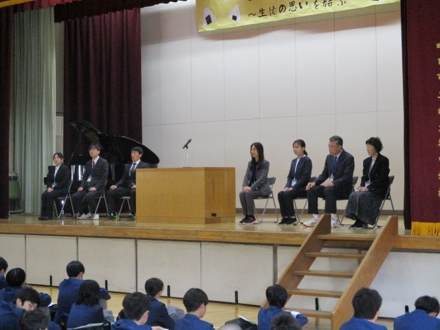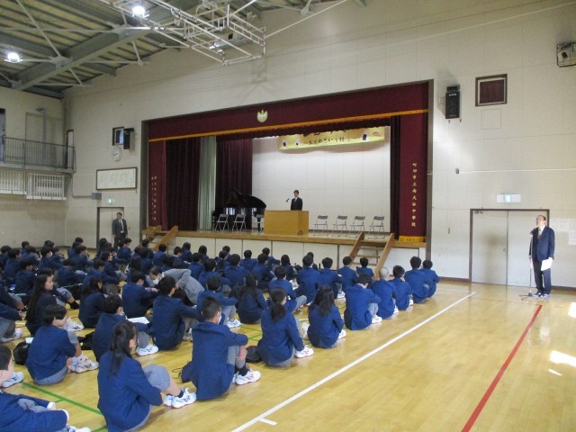 式のはじめに全員で校歌を斉唱し、校長先生の式辞のあと、3月末で退職・転任された先生ならびに4月から着任された先生方のご紹介がありました。