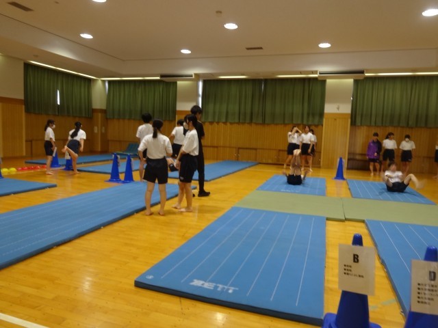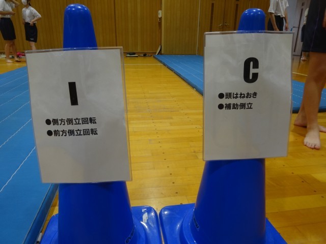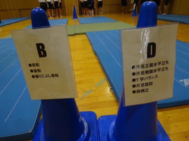 修学旅行から帰ってきて間もないですが、普段の学校生活に戻っております。体育の授業ではマット運動を練習していました。それぞれの場所で種目が決められており、自分の到達度にあった技を選択し、練習していました。一つの技にこだわって練習する生徒もいれば、色々な場所を回って練習している生徒もいました。実技テストに向けて、自分の力が一番発揮できるよう頑張っています。