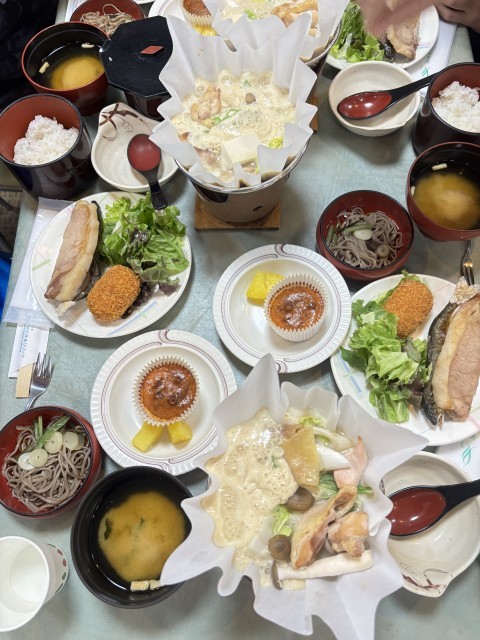 食事の前にはお風呂とお土産を買う時間があり、スキーで疲れた体を癒していました。