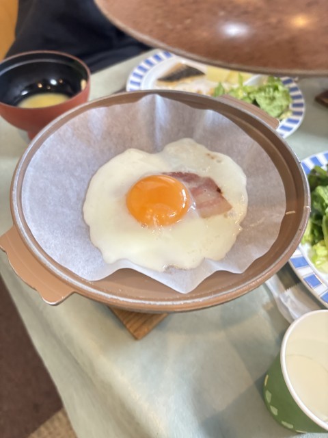 朝食はベーコンエッグです。