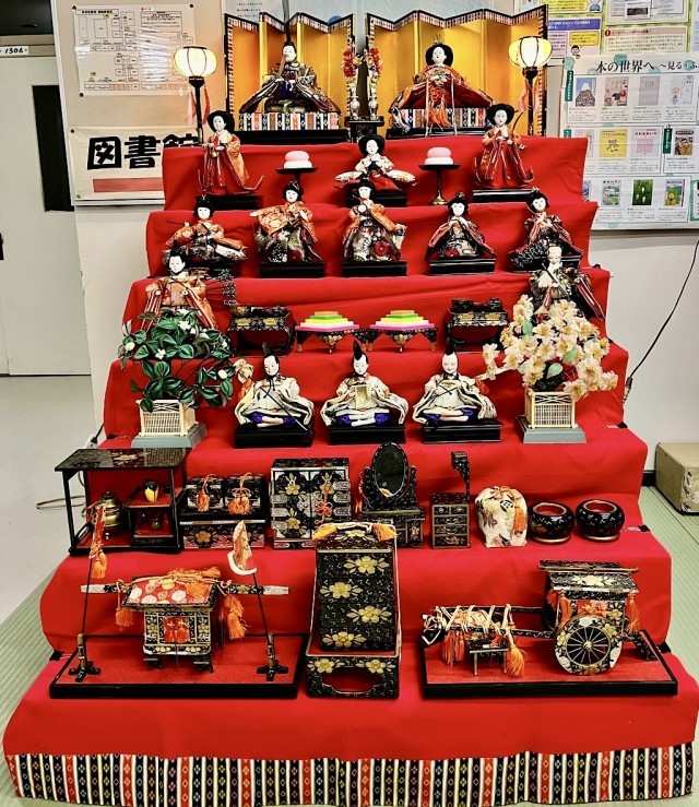 PTAからの飾り付けボランティアの方やポプラ学級の生徒のお手伝いもあって、雅やかさが一段と感じられる雛人形を今年も鑑賞することができます。ありがとうございました。
