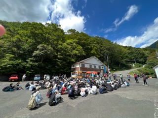 谷川岳のトレッキングを開始しました! 各クラス2グループに分かれ、それぞれにガイドさんがついて解説を聞きながら3km強の道のりを歩きます。