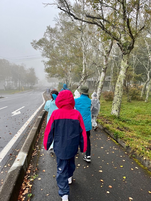 予定では、朝食前の散歩でしたが、天候により朝食後の散歩に変更が連絡されました。