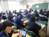 2年生の保健体育の授業では「傷害の防止」という単元を学習しています。この日は体育館で救命救急と応急手当についての学習を行いました。救命救急については、AED(自動体外式除細動器)の使用方法を動画を見な...