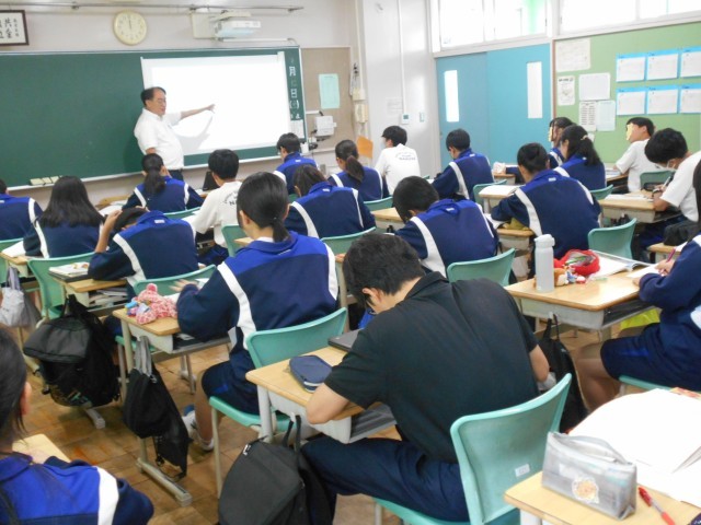 3年生の国語の授業では松尾芭蕉の「おくのほそ道」を学習しています。芭蕉が「おくのほそ道」を書いた時の心情や当時の庶民の生活を考えながら読み進めました。文章に出てくる当時の職業の「船頭」、「馬子(まご)」などはスクリーンに映し出されたイラストを見て理解を深めました。