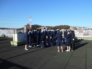 11月28日(金)、3年生は卒業アルバムに載せるためのクラス写真を撮影しました。各クラスの生徒たちが希望する場所で撮影をすることになりましたが、普段は入ることができない屋上での撮影が人気でした。