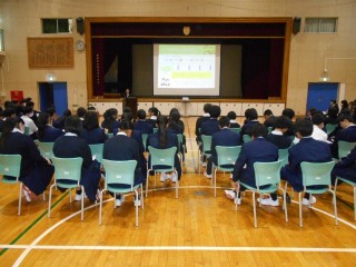 12月18日(木)、2年生はハローワーク町田の職員の方をお招きし、職業意識形成講座を実施しました。2年生は1月に職場体験学習を行います。職場体験本番に向けて意識を向上させることが目的でした。働くということ、職業について、東京での就職の話、働くために必要なこと、上級学校への進学の際にも自分の将来を見据えることの大切さ、自分に合う仕事を見つけるための大切なこと、などについてお話していただきました。2年生は真剣に講座を受け、職場体験に向けての参考とすることができました。
