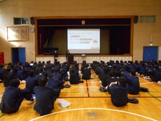 12月23日(火)各学年で学年集会が行われました。写真は1年生の学年集会の様子です。各クラスの学級委員や学級委員長、鎌倉校外学習実行委員長から話があり、この2学期を振り返って良かった点と課題を確認し、3学期に活かしていきましょうという呼びかけがありました。また、1学年の教員からは学習への取り組み方ついての話がありました。最後は2学期を振り返るスライドを鑑賞しました。