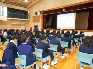 1月9日(金)、2年生は職場体験を控えているということでマナー講座を実施しました。ハローワーク町田の職員の方を講師にお迎えし、働く上での心構え、マナーの大切さ、マナーとしての実際の動きなどについてお話をしていただきました。お辞儀、電話対応、立ち方、挨拶、笑顔づくりなどを生徒たちは実際にやってみました。職場体験に向けての緊張感が高まってきました。