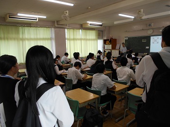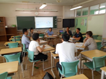 今回は小学校の先生方が本校の授業の様子を参観し、その後、教科ごとのグループに分かれて教員同士で協議を行う形式で実施しました。落ち着いて学習している生徒たちの様子を見て、「みんな大人になりましたね。頑張っていますね。」と感慨深く話をしている小学校の先生方がいました。