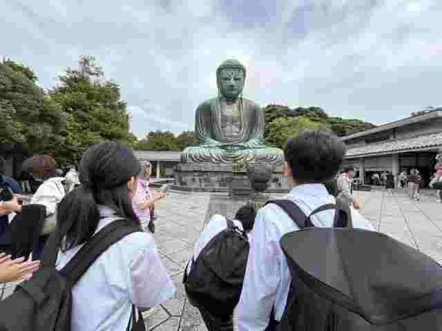 鎌倉大仏 高徳院でのI組生徒の様子です。