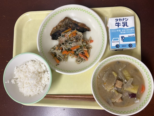 ニラもやし炒め、さつま汁、牛乳です。