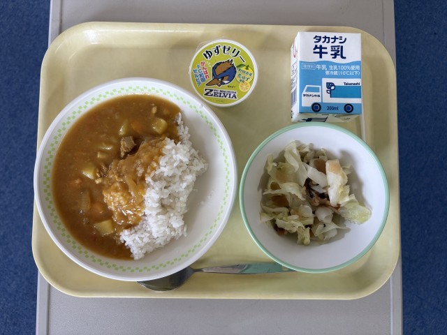 町田産花ゆずゼリー、牛乳です。