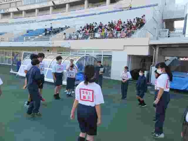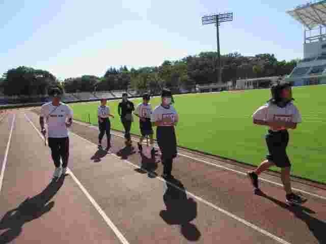 町田GIONスタジアムまで歩いて行き、コースを確認してからそれぞれの種目の距離を実際に走りました。