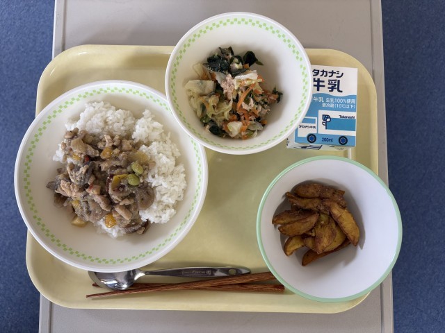 じゃが揚げカレー風味、牛乳です。