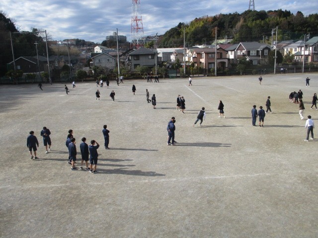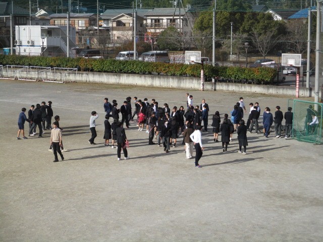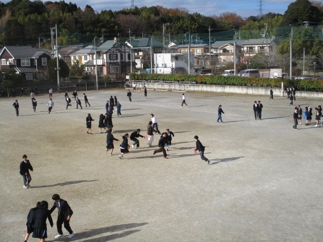 昼休みに2年生の学年企画で、「しっぽとり」が始まりました。