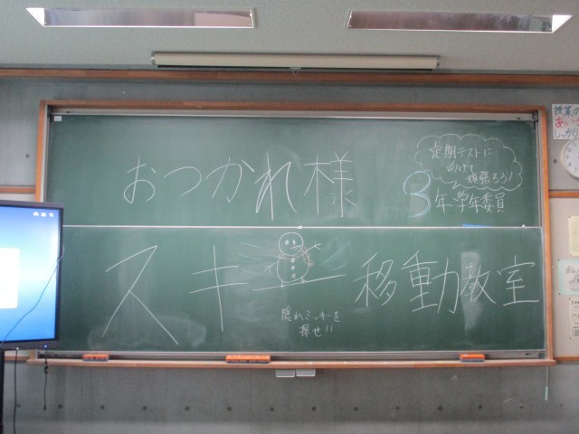 3年生の学級委員が入って、一生懸命メッセージを書いていました。