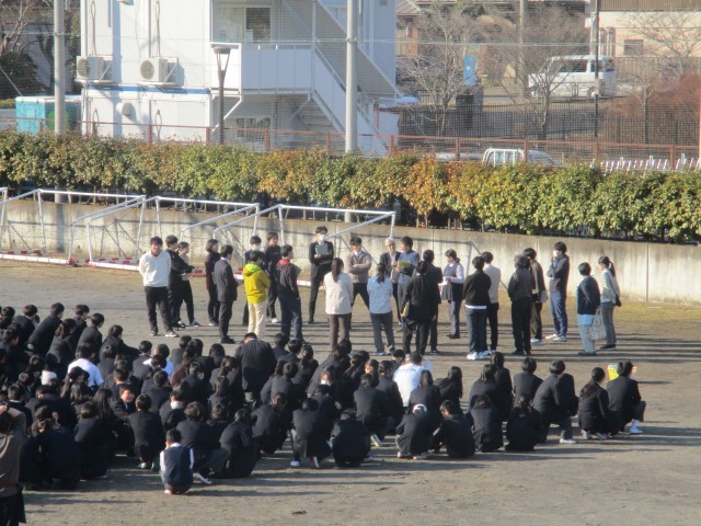 災害は、いつ起きるかわからないものですが、保健委員会のやってくれているハンカチチェックキャンペーンも役立ち、ハンカチを鼻や口にあてて逃げている生徒もいました。もしなければ、制服の腕の部分で代用する・姿勢を低くするなど、自分で考えて対応できるようになると安心です。