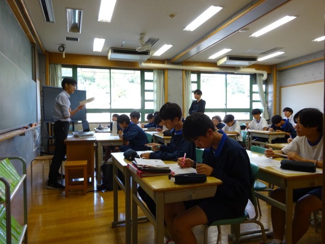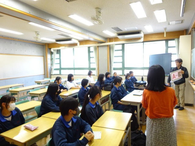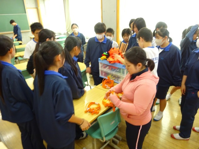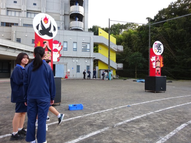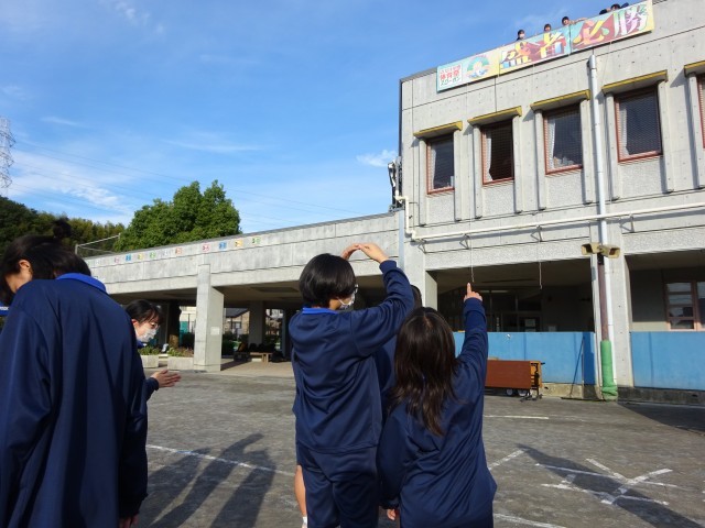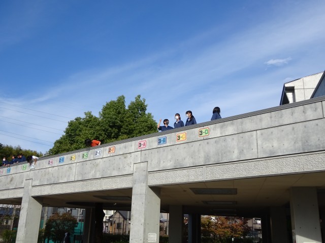 スローガンの看板の傾きの調整をしている仲間に、OKサインを出していました。