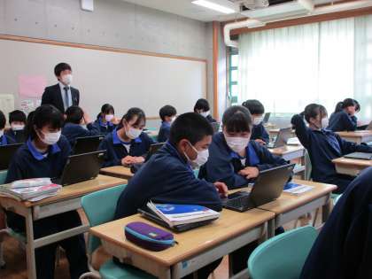 熱中症防止のために、保健体育は校庭で授業を行う時も、いつでも水分が補給できるように水筒を持参しています。