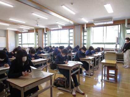 通常の学級は国語、I組は社会と理科のテストの様子を全学級ご覧いただきます。