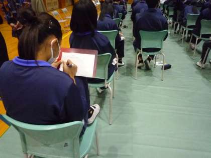 11月16日(水)、2年生を対象にアリーナにて「薬物乱用防止教室」を開催しました。