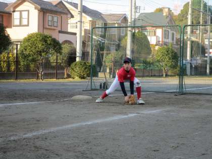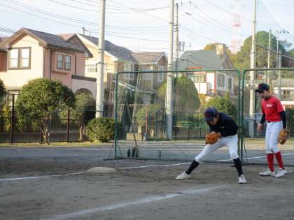 野球部の練習の様子です。 顧問の先生からノックを受けて練習をしていました。