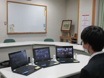 生徒会役員は、生徒会スローガンの発表や生徒活動に関することを一人一人頑張ってお話をしていました。