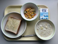 2年生の男子は校舎周りを走り、持久走に取り組んでいました。