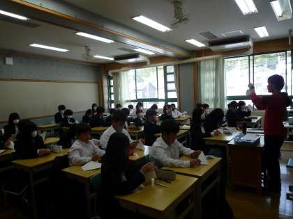 学級目標や音楽祭のスローガンの案などを考えているクラスもありました。