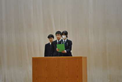 続いて、代表生徒の言葉として3名が壇上で、2学期を振り返って、最上級生として考えていること、下級生に向けてなど、立派な話をしていて感動しました。