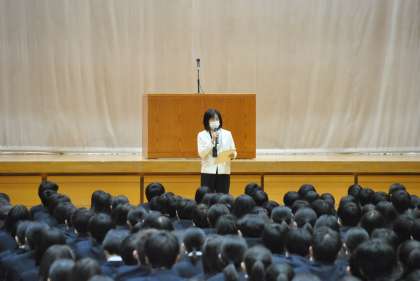 式が終わり、引き続き生活指導主任から、2学期の振り返りと冬休みの過ごし方についてお話をいたしました。