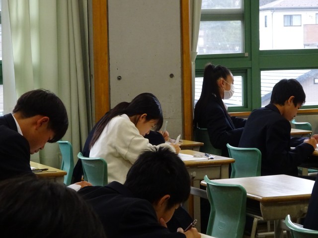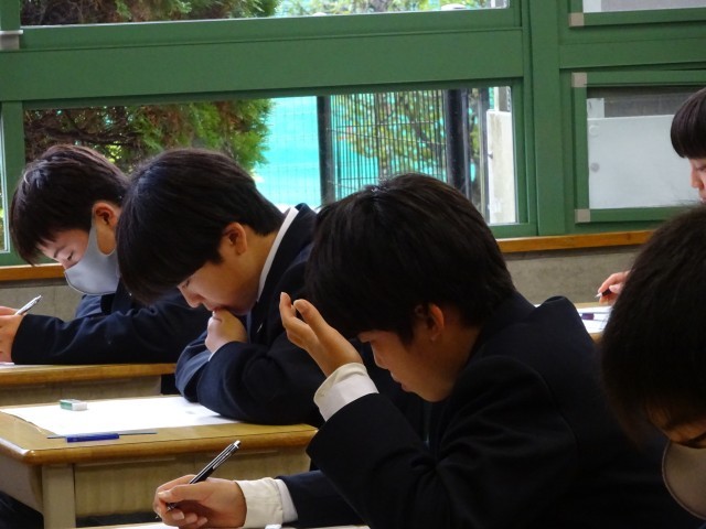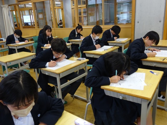 復習確認テストを受けている鶴中生の様子です。