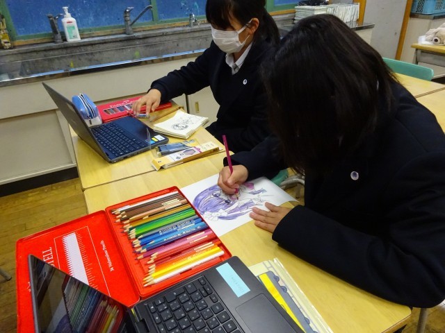 美術室では、美術・イラスト部が、アリーナでは男女バレーボール部とバドミントン部が活動をしていました。