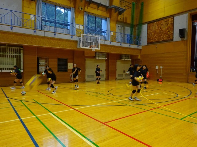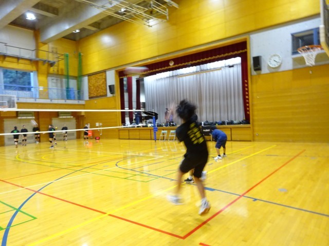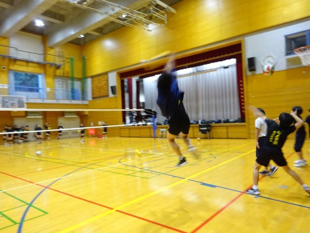 男子バレーボール部員は、力強いサーブを見せてくれました。
