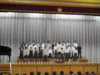 3年生の課題曲リハーサルの様子です。舞台に立つと少し控えめになる3年生でしたが、当日は迫力のある歌声を聞かせてくれるはずです!楽しみにしていますよ!!