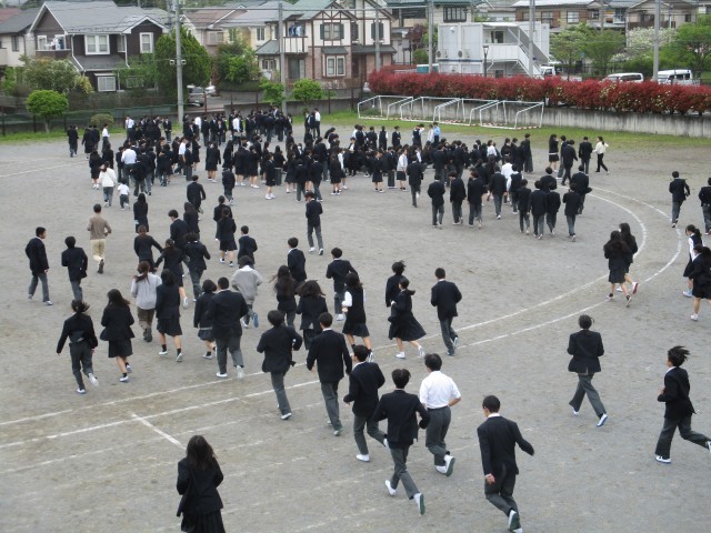 今日は火災を想定した避難訓練です。鶴川中の皆さんは、いつも真剣に訓練に臨んでいて、前で講話をする際も、皆さんの目がちゃんと先生を見ているのがわかってとてもうれしいです!