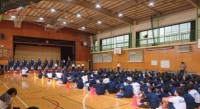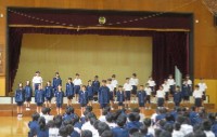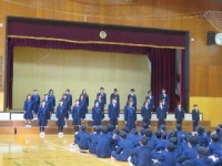 1学年は、2時間目に合唱コンクールのミニリハーサルを行いました。緊張した顔で登壇...