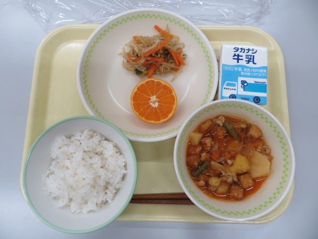 12月11日は、タットリタンとナムルの韓国料理の給食でした。タットリタンは、鶏肉とじゃがいもを煮込んだ家庭料理です。