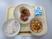 12月12日の給食です。和野菜のだいこんも立派な洋食メニュー(サラダ)に変身です。