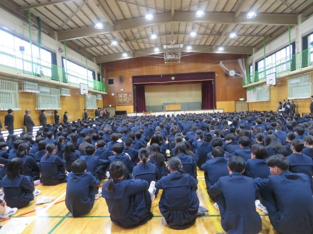 700名近い生徒の後ろ姿は、なかなか迫力があります。最後まで落ち着いた式で、穏やかな空気が体育館をまとっていました。
