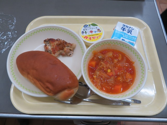 今日は3年生にとって、鶴川二中最後の給食です。ハーブチキンを噛みしめながら仲間と楽しいひとときを過ごせたのではないでしょうか。