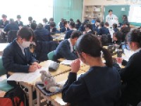 1年生理科の授業で、学校敷地内に咲いている植物の観察を行いました。クロムブックで様々な植物の様子を撮影し、その画像を参考にして教室で植物のスケッチを行いました。理科の学習を進めながらも声を掛け合い、友達関係を広げている場面も見受けられました。わからないことがあったり、疑問を感じたりしたら、先生や近くの生徒に聞いてみましょう。